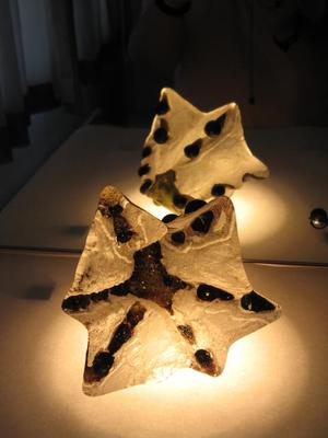 Black 'seeds' made in hot shop, embedded in sand cast mould.nfs